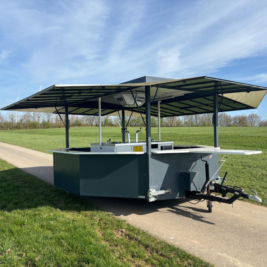 Ausschankwagen mit zwei Zapfhähnen und zwei Kühlschränken - praktisch ausgestattet für eine zuverlässige Getränkeversorgung bei kleineren Veranstaltungen.